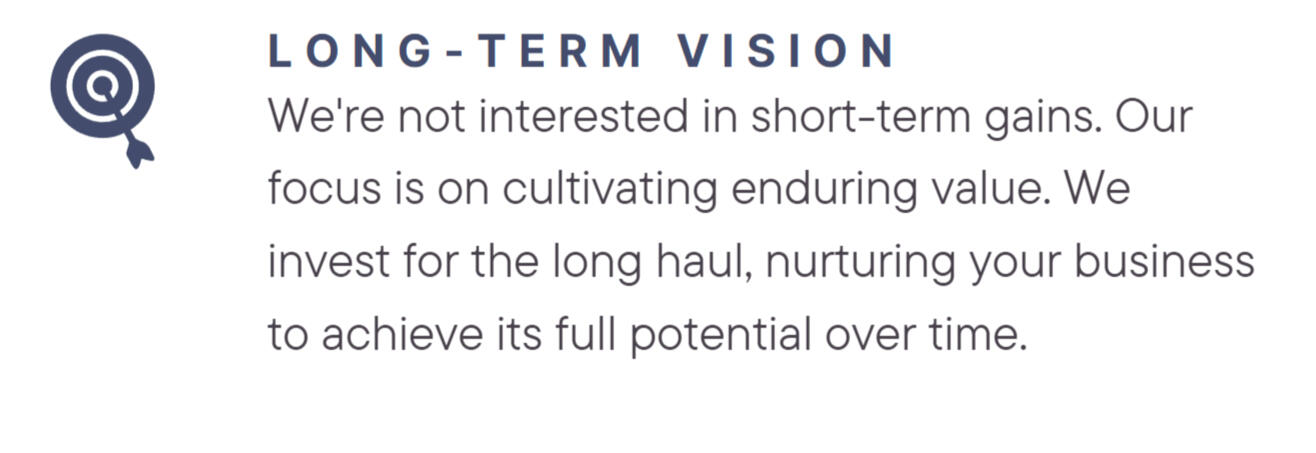 Securely maintain ownership of the company for lasting success. We plan to own your company for decades.